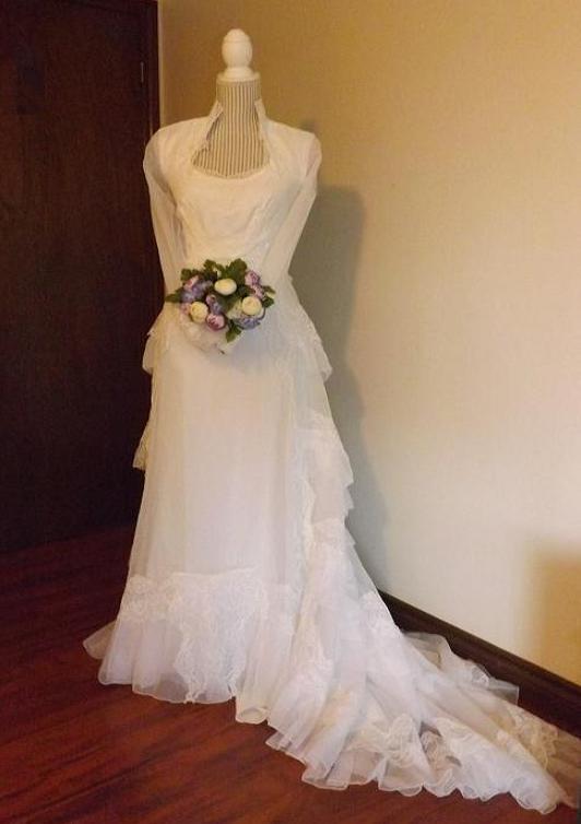 Gorgeous Vintage Organza Bridal Gown with matching Veil