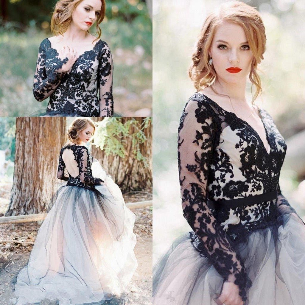 Discount Abiti Da Sposa Gothic Black White Wedding Dresses