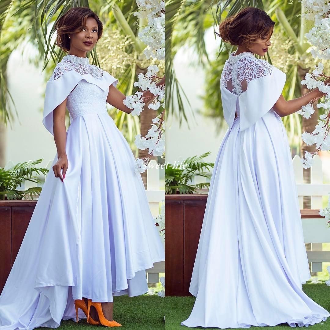 Modest A Line High Neck Cap Sleeve Lace Tulle Peplum