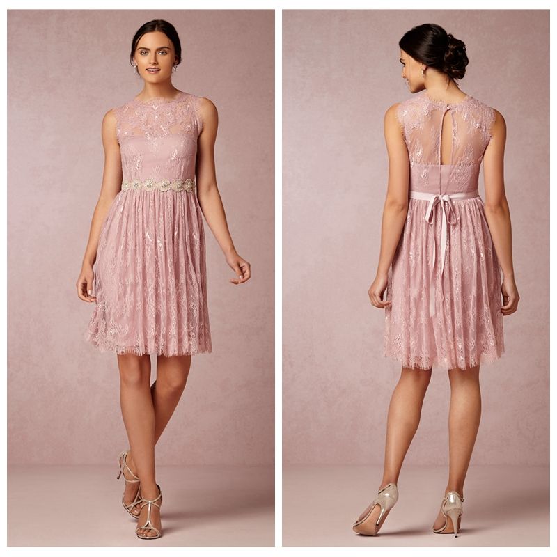 Blush Pink Lace Short Bridesmaid Dress Knee Length Jewel A
