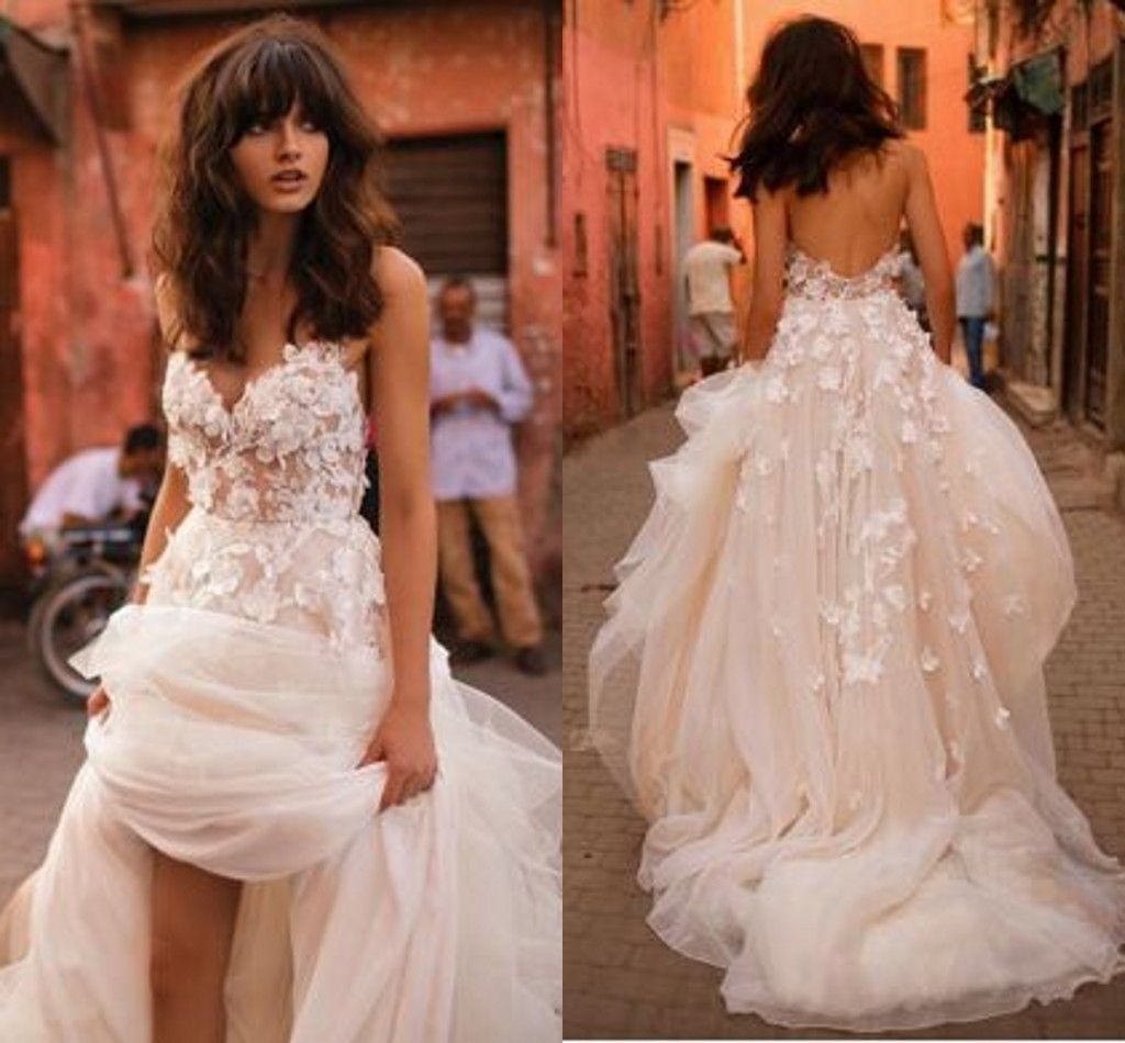 Vintage 2018 Blush Lace Beach Garden Wedding Dresses Sexy