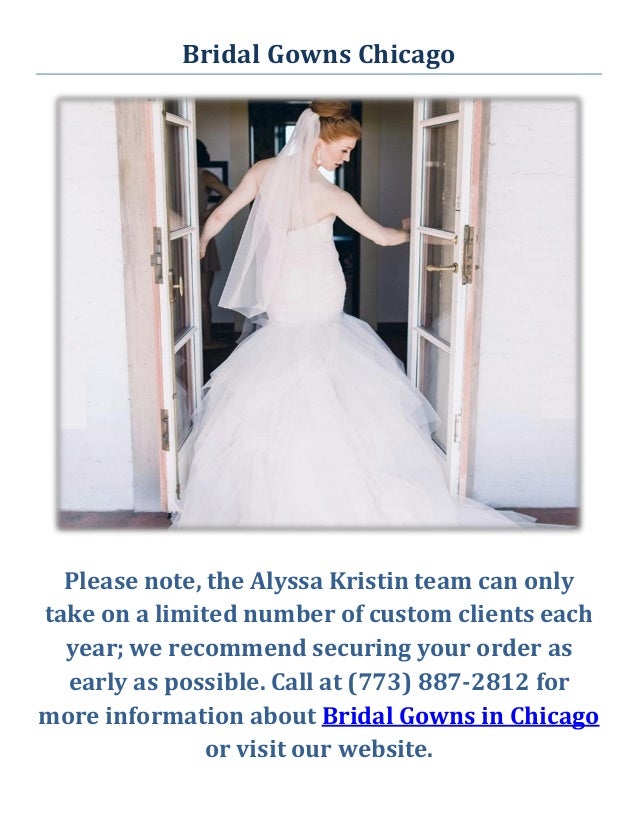 Located in Chicago s esteemed Oak Street fashion district Dimitra s Bridal Couture opened its doors in 2001 bringing to Chicago s bridal scene an experience Alyssa Kristin - Wedding Dresses Bridal Gowns Made with Love in Chicago IL . Wedding Designer Couture More Details SCHEDULE YOUR Appointment BOOK NOW Gowns For All Occasions More Details Chicago Bridal Boutique A coveted selection of bridal gowns and accessories from the world s top designers. Make an Appointment . THE ALYSSA KRISTIN DIFFERENCE. A high end bridal salon in Chicago that carries exclusive designers like Monique Lhuillier Berta Oscar de la Renta Carolina Herrera and more.