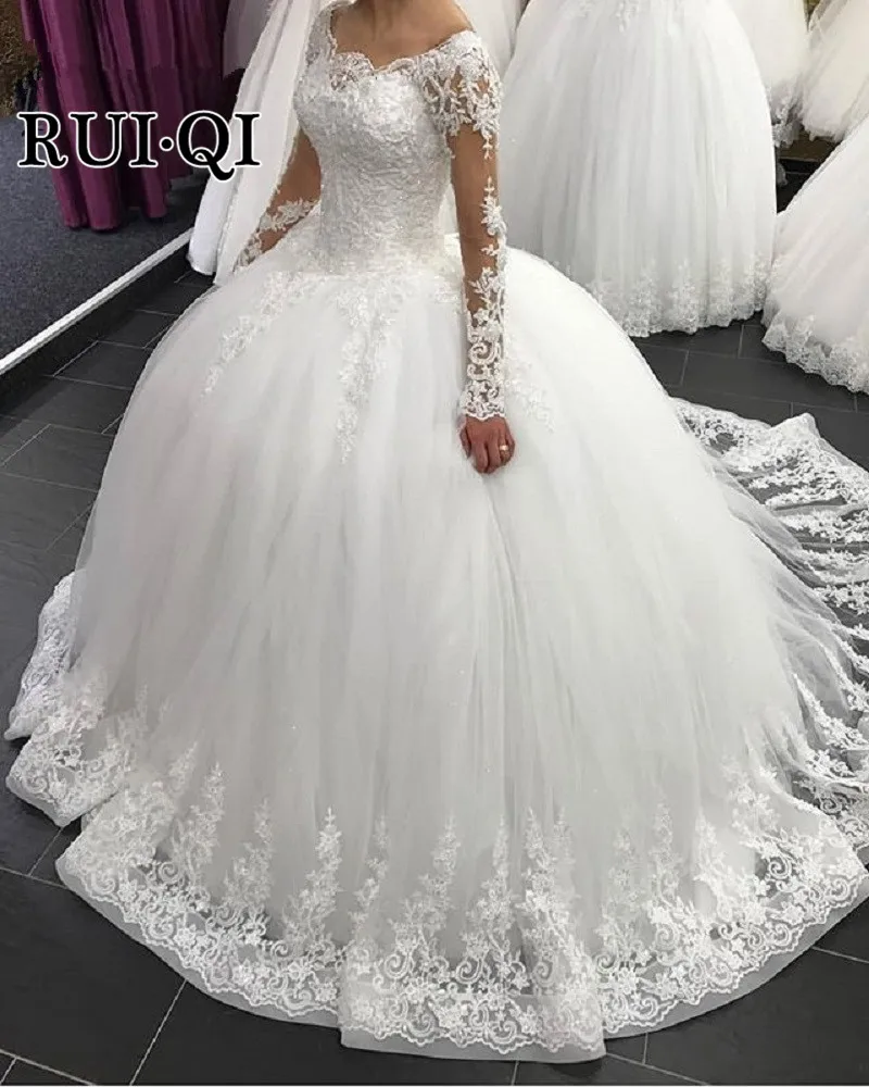 2019 Elegant Long Sleeve Wedding Dresses Lace Ball Gown