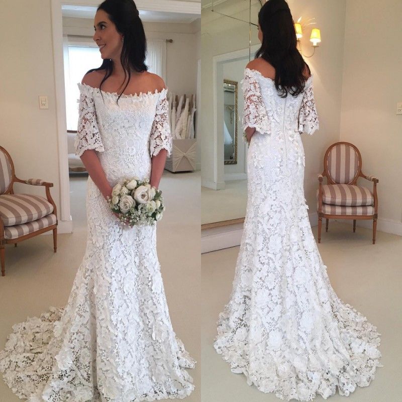 2015 Vintage Modest Lace Wedding Dresses With Half Sleeves