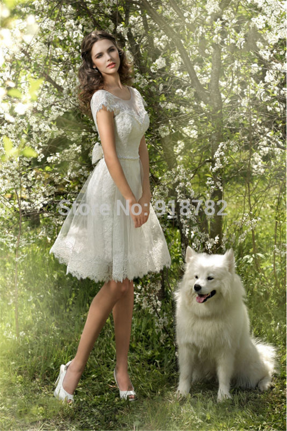Discount A Line Lace Bohemian Short Wedding Dresses 3 4