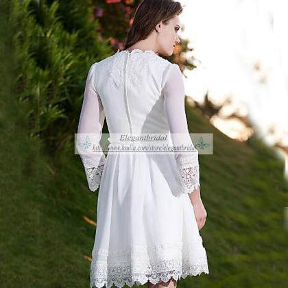Short Beach Modest Wedding Dresses With Sleeves Chiffon