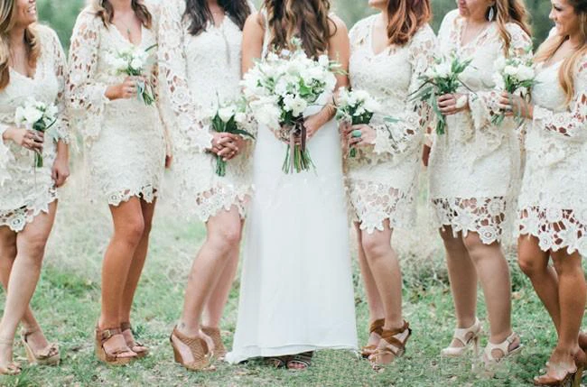 2018 Boho Lace Bridesmaid Dresses Off Shoulder Sheath Knee