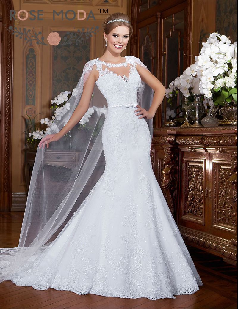 Online Get Cheap Lace Mermaid Wedding Dress With Cape