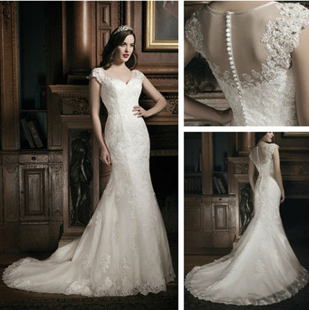 wholesale-Cap-Sleeve-V-neek-Lace-Beading-Appliques-Mermaid