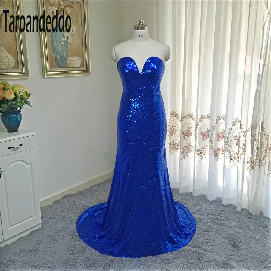 Strapless Royal Blue Sequin Cheap Prom Dress Mermaid