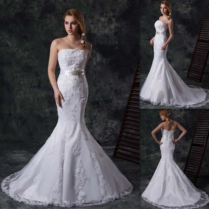 2016 Bling Strapless Cheap Long Mermaid Lace Wedding