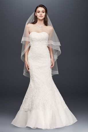 Lace Overlay Charmeuse Wedding Dress with Train David s
