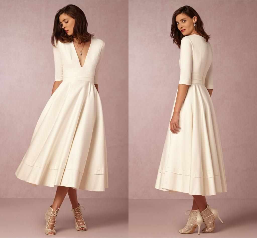 Discount Modest Simple 2017 Wedding Dress Cheap V Neck