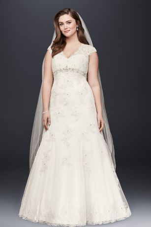 A-line Plus Size Wedding Dress with Lace Up Back David s