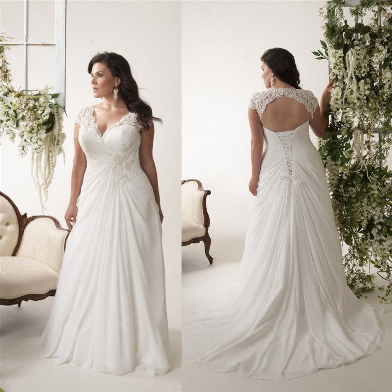 Amzing Plus Size Lace Wedding Dresses Beach Chiffon Gowns