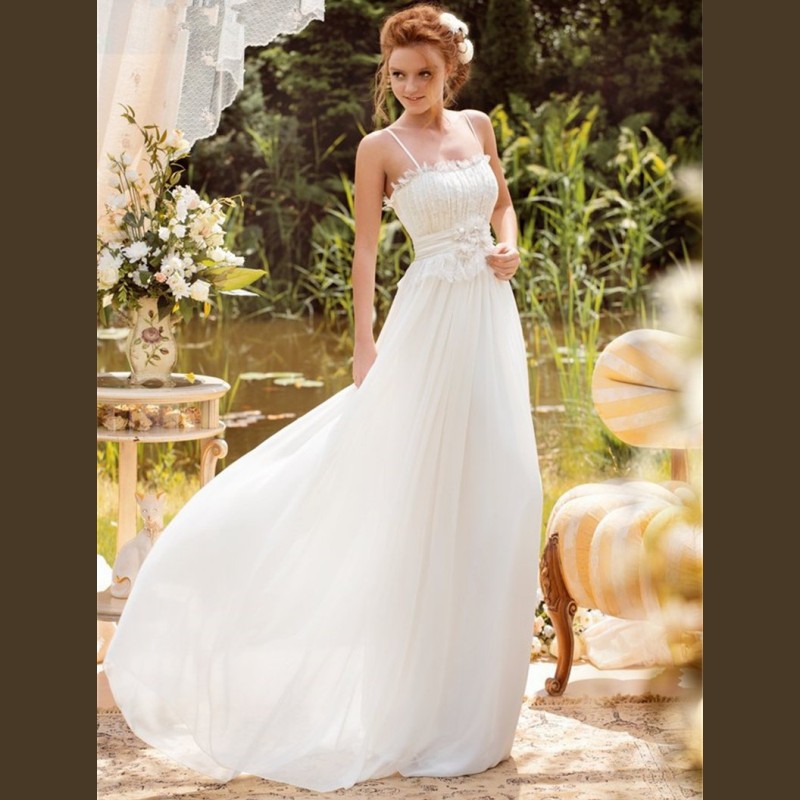 Spaghetti Straps White Long Chiffon Lace Beach Wedding