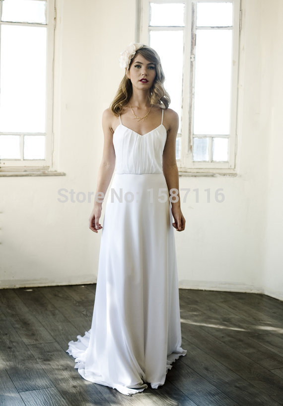 Spaghetti Strap White Chiffon Beach Wedding Dresses Simple