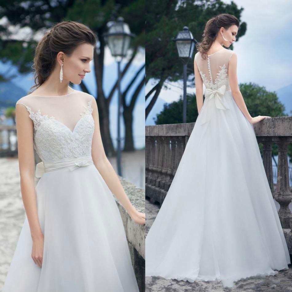 New Arrival 2017 Summer Beach Wedding Dresses Sheer Scoop