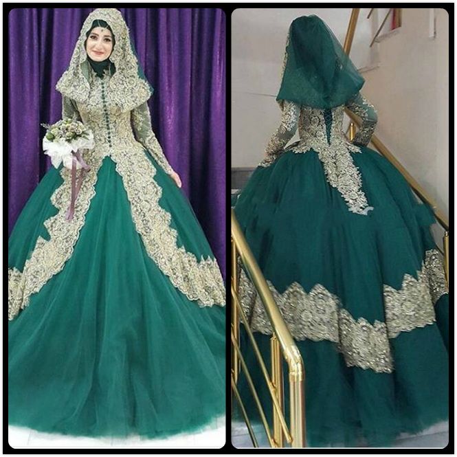 Turkish Islamic Green Wedding Dress 2017 Ball Gown Tulle