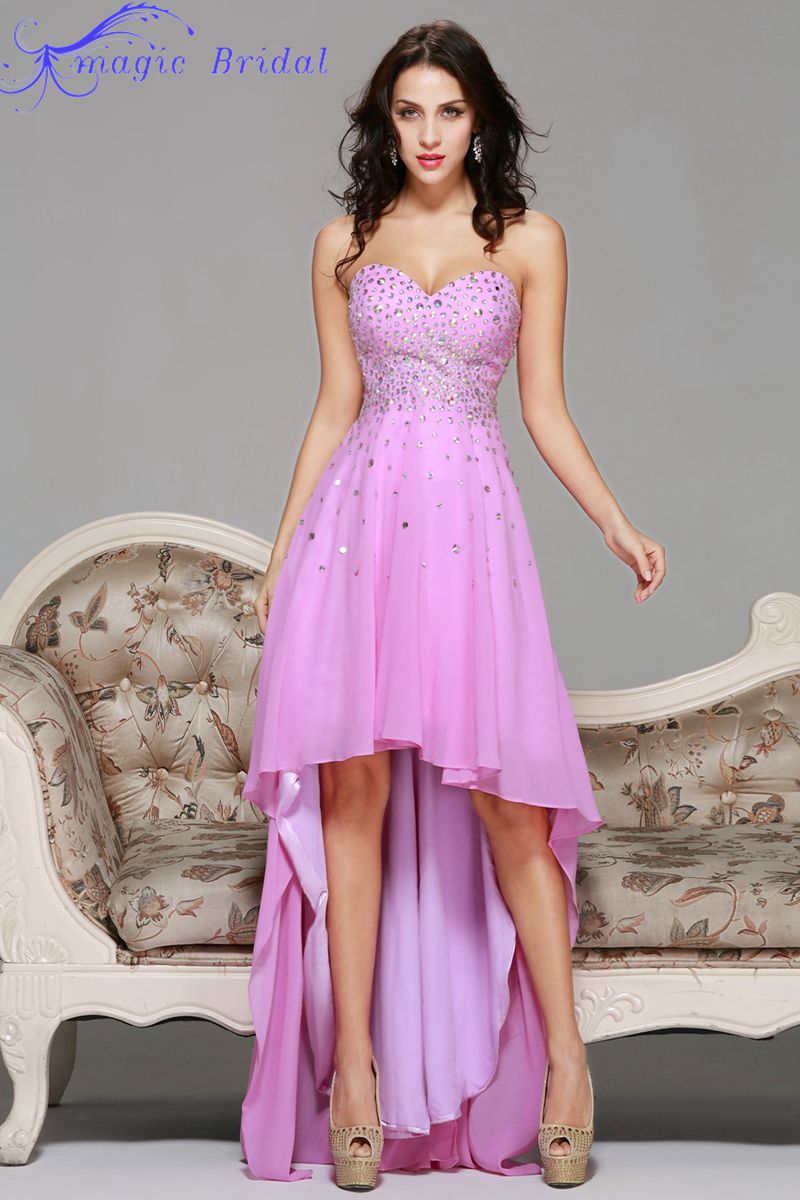 New Chiffon High Low Purple Pink Prom Dresses Short Front