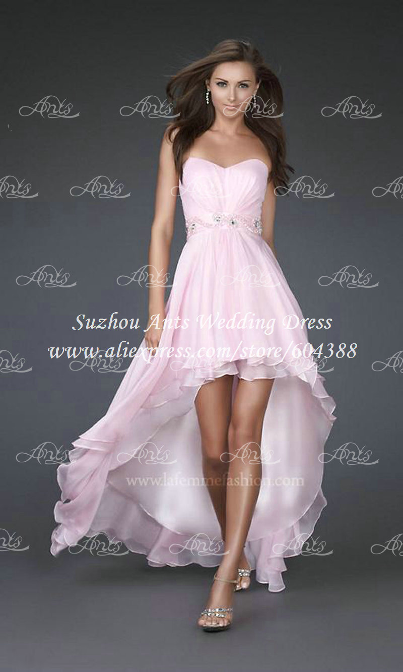Hot Sale Swetheart Rhinestone Pink Chiffon High Low Prom