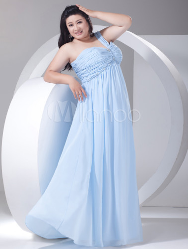 2014 Style Light Sky Blue Beading One-Shoulder Plus Size