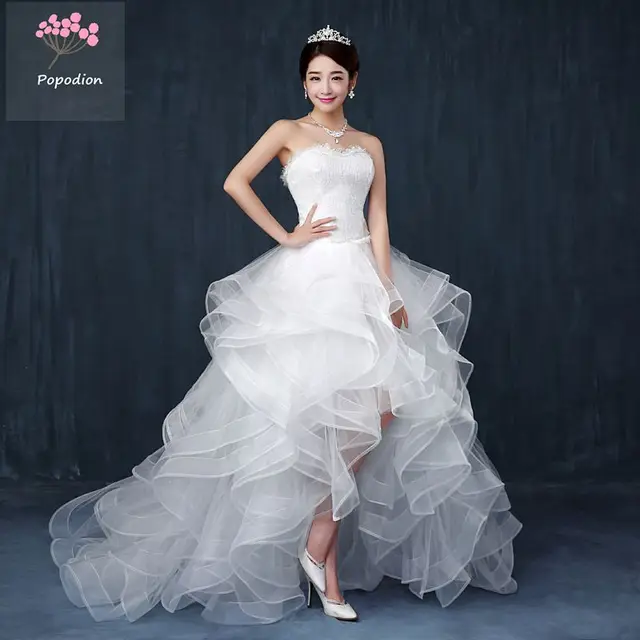 Strapless wedding dress sexy short front long back bride