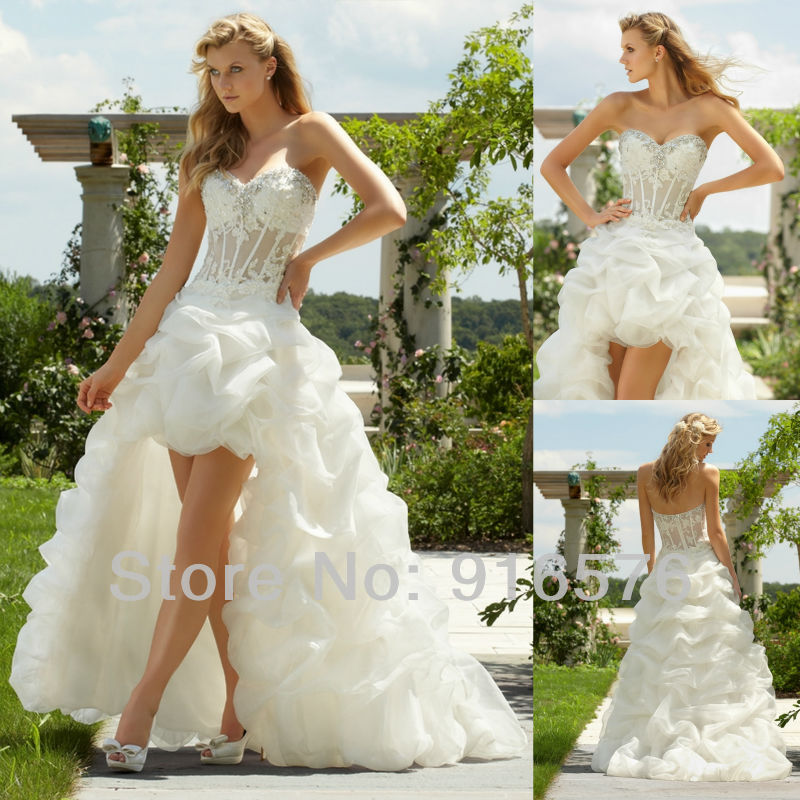 High Low Beach Wedding Dresses Embroider Pleat Organza