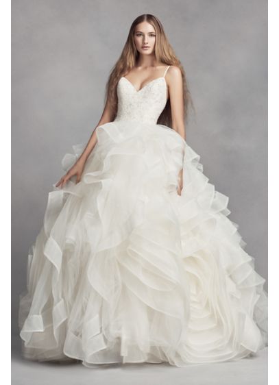 White by Vera Wang Organza Rosette Wedding Dress - Davids