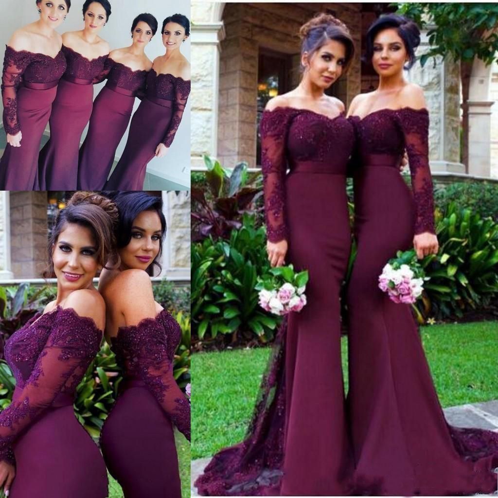 2017 Bridesmaid Dresses Burgundy Long Sleeves Mermaid Lace